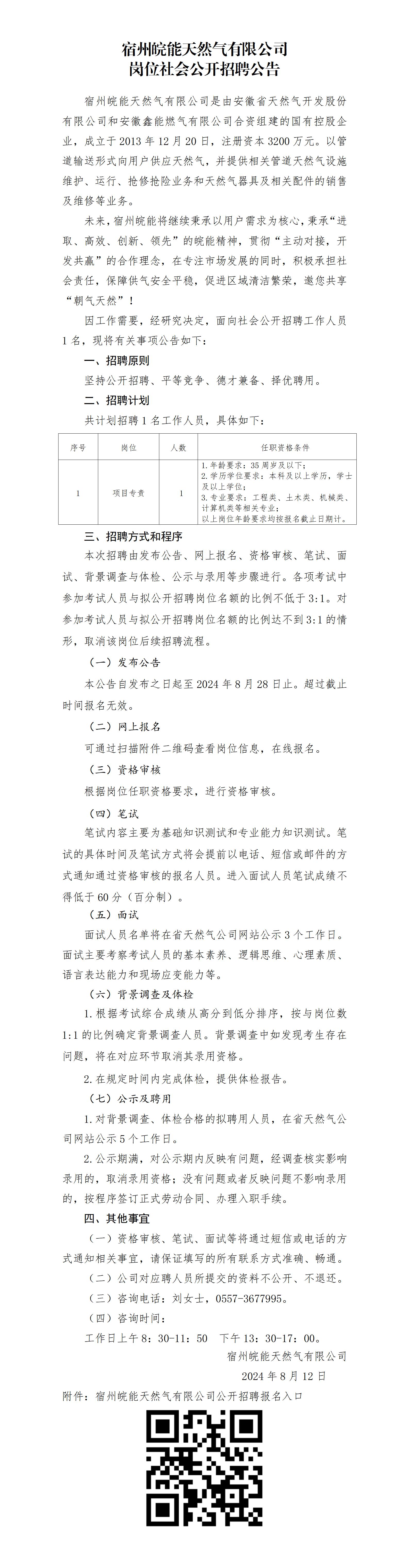 2024年宿州皖能天然氣有限公司崗位社會(huì)公開招聘公告