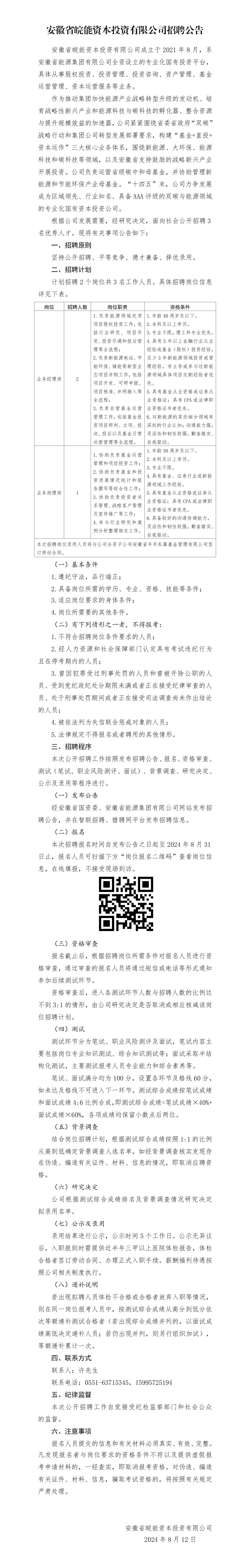 根據(jù)公司發(fā)展需要,經(jīng)研究決定,面向社會(huì)公開招聘3名優(yōu)秀人才?,F(xiàn)將有關(guān)事項(xiàng)公告如下: