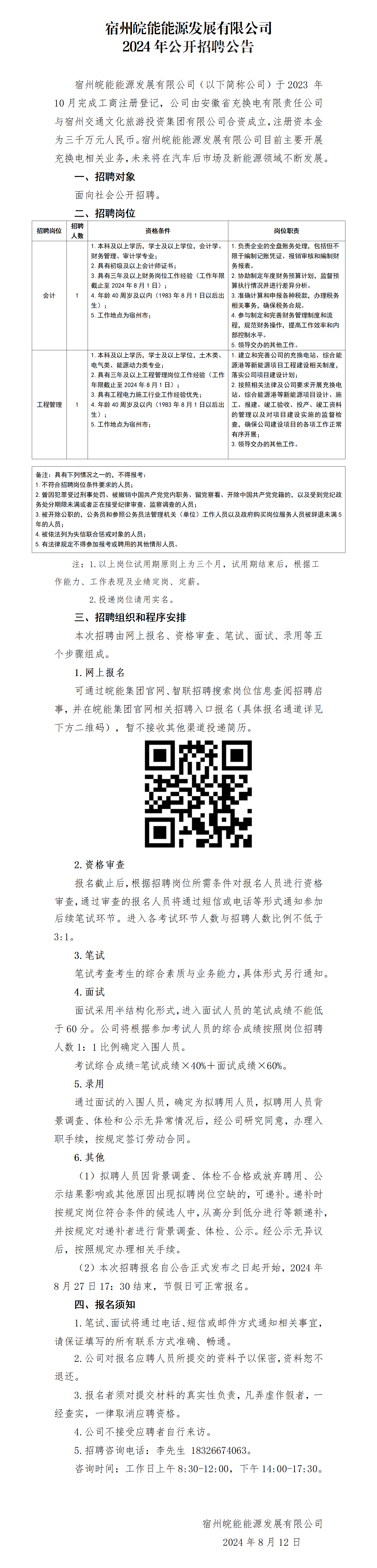 2024年宿州皖能能源發(fā)展有限公司公開招聘公告