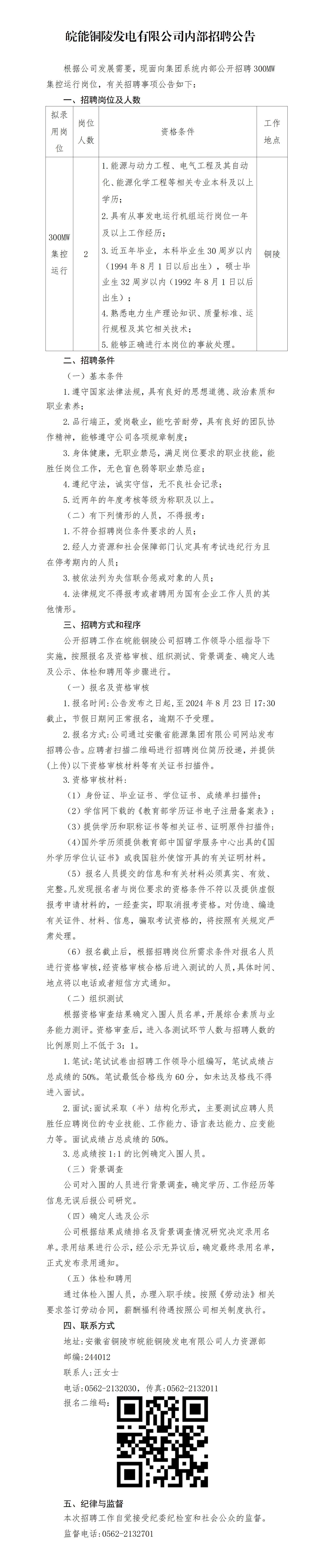 2024年皖能銅陵發(fā)電有限公司內(nèi)部招聘公告