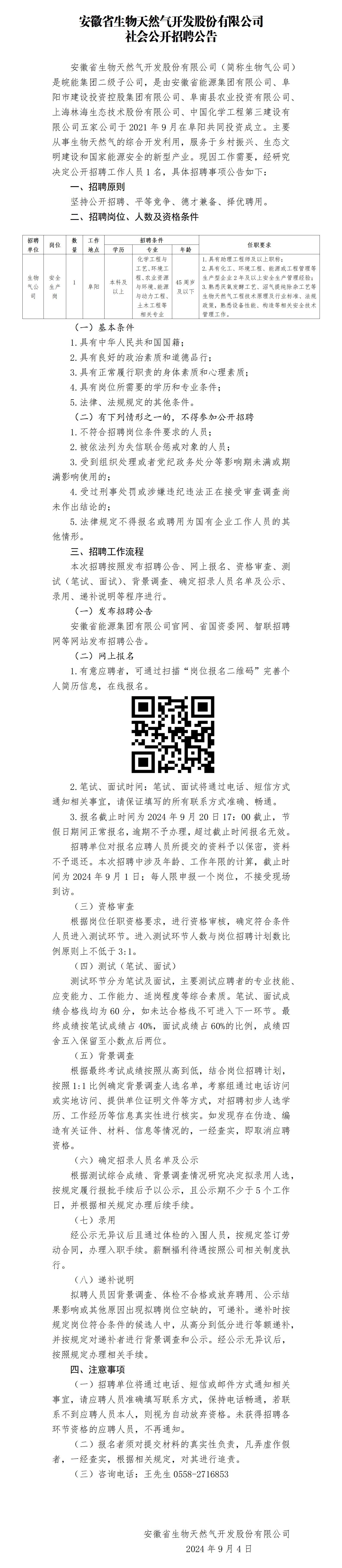 2024年阜陽安徽省生物天然氣開發(fā)股份有限公司社會公開招聘公告