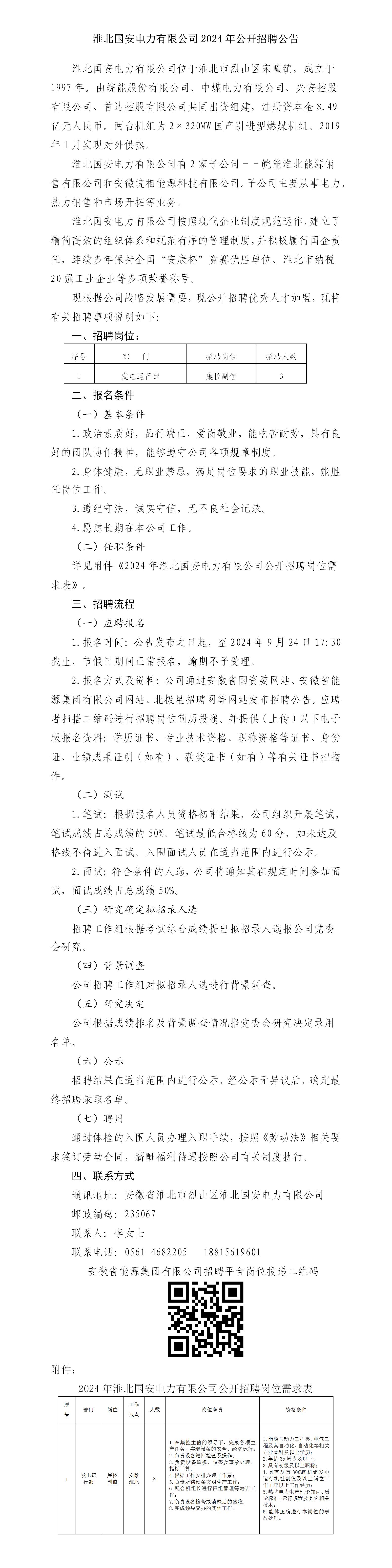淮北國安電力有限公司有2家子公司-–皖能淮北能源銷售有限公司和安徽皖相能源科技有限公司。子公司主要從事電力、熱力銷售和市場開拓等業(yè)務(wù)。