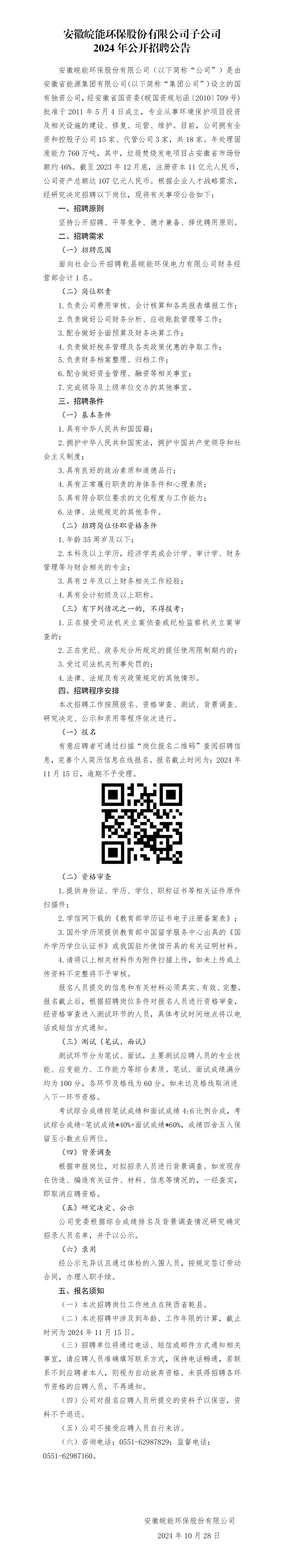 2024年安徽皖能環(huán)保股份有限公司子公司公開(kāi)招聘公告