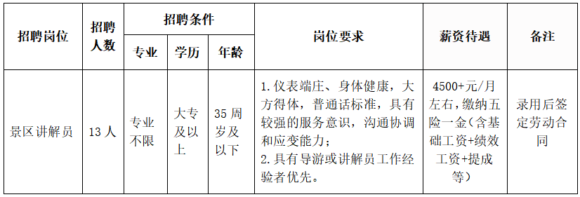 工作地點:徽州古城景區(qū)、許村景區(qū)、棠樾牌坊群景區(qū)、黃賓虹藝術中心。(備注:由公司統(tǒng)一調配工作地點,應聘者需無條件服從安排。)