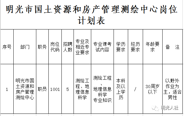 附件:1.明光市國(guó)土資源和房產(chǎn)管理測(cè)繪中心公開招聘工作人員崗位計(jì)劃表