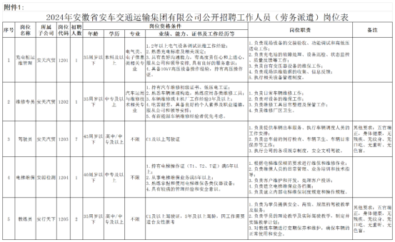 附件1:2024年安徽省安車交通運(yùn)輸集團(tuán)有限公司公開招聘工作人員(勞務(wù)派遣)崗位表