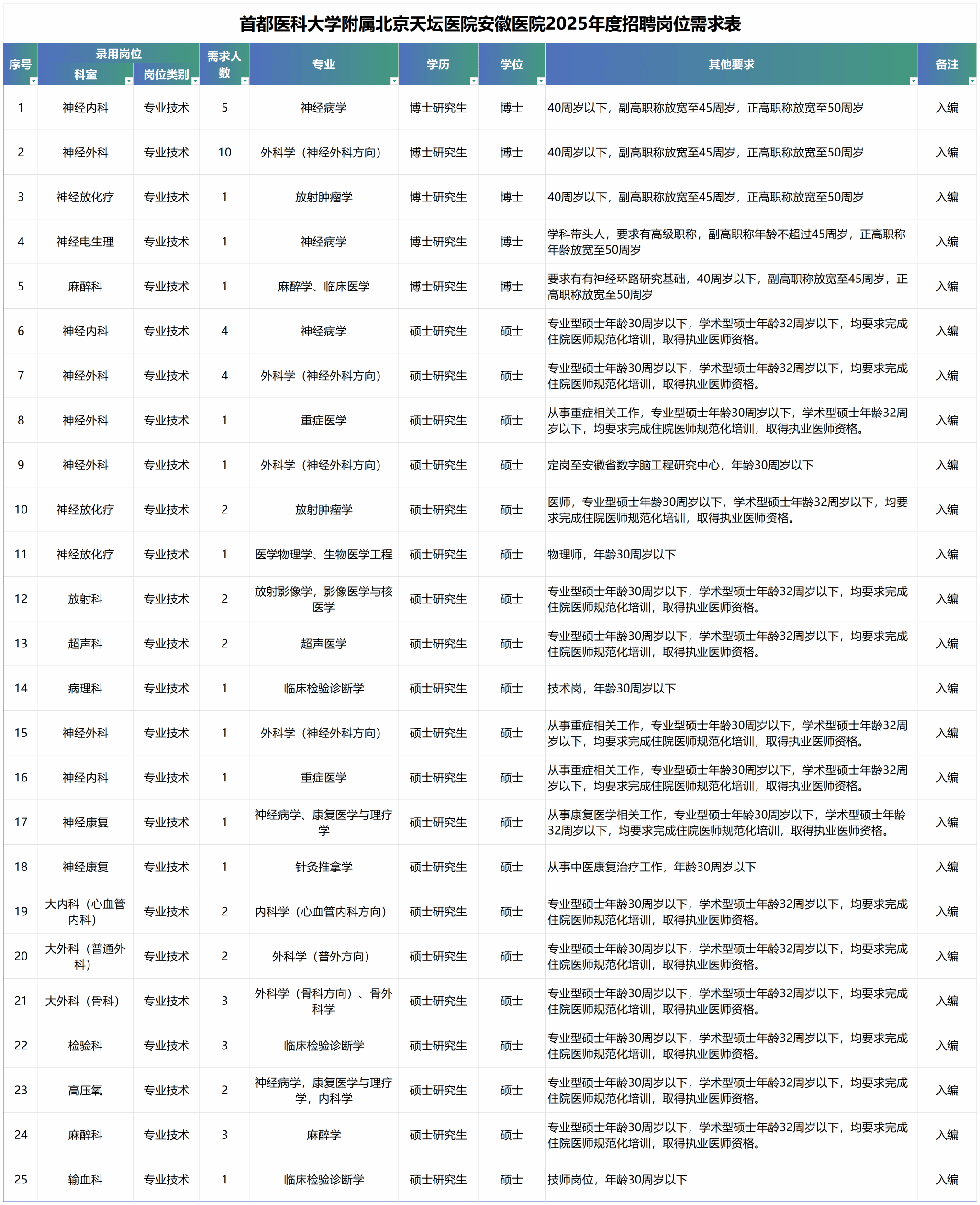 2025年蕪湖首都醫(yī)科大學附屬北京天壇醫(yī)院安徽醫(yī)院公開招聘碩士及以上高層次人才預公告
