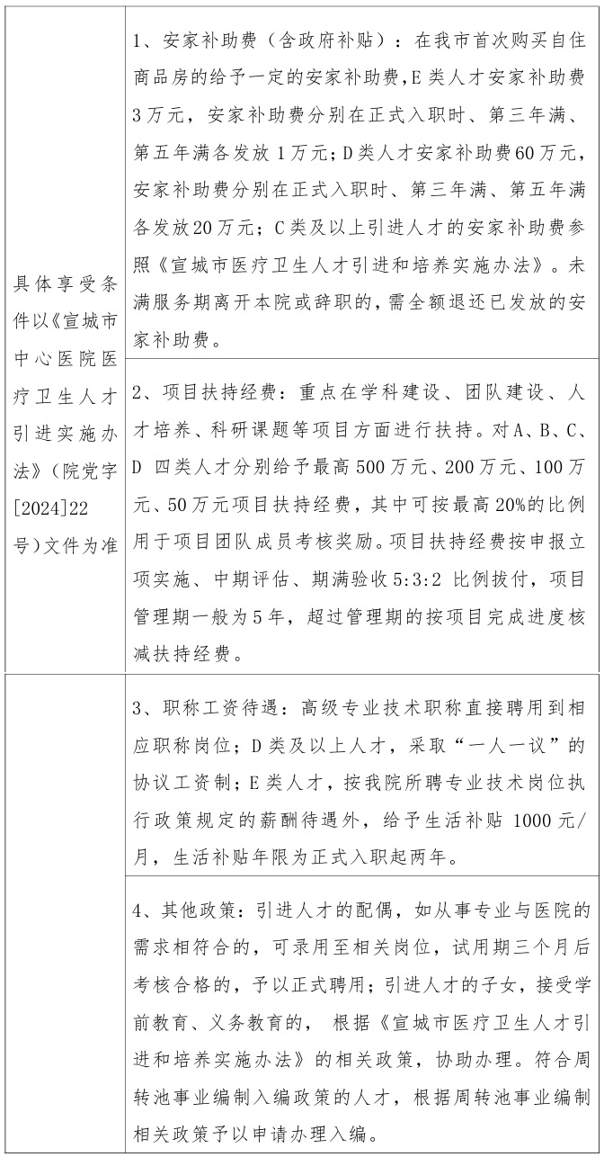 (三)本公告未規(guī)定的以上級(jí)主管部門政策為準(zhǔn),未盡事宜由宣城市中心醫(yī)院公開招聘工作領(lǐng)導(dǎo)組研究決定。
