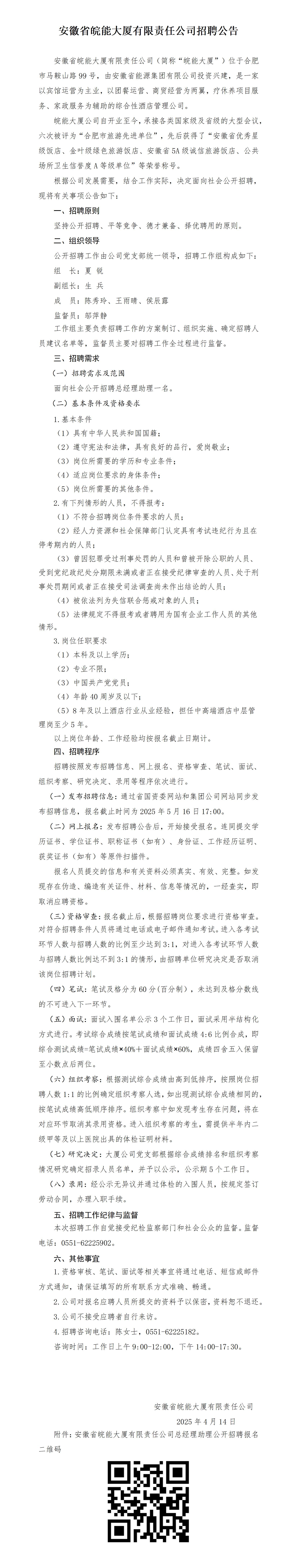 2025年安徽省皖能大廈有限責(zé)任公司招聘公告