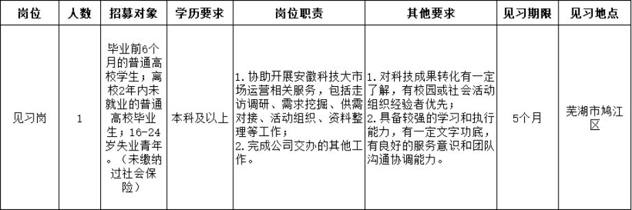 2025年安徽科技大市場(chǎng)建設(shè)運(yùn)營(yíng)有限責(zé)任公司見(jiàn)習(xí)人員(蕪湖)招募公告
