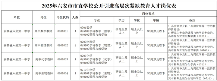 2025年六安一中公開(kāi)引進(jìn)高層次緊缺教育人才公告