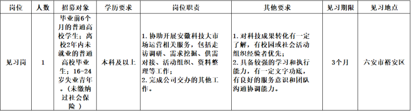 因工作需要,經安徽科技大市場建設運營有限責任公司研究決定,委托安徽皖信人力資源管理有限公司公開招募1名見習人員。現(xiàn)就有關事項公告如下: