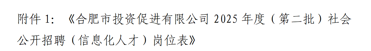 2025年合肥市投資促進有限公司(第二批)社會公開招聘(信息化人才)公告
