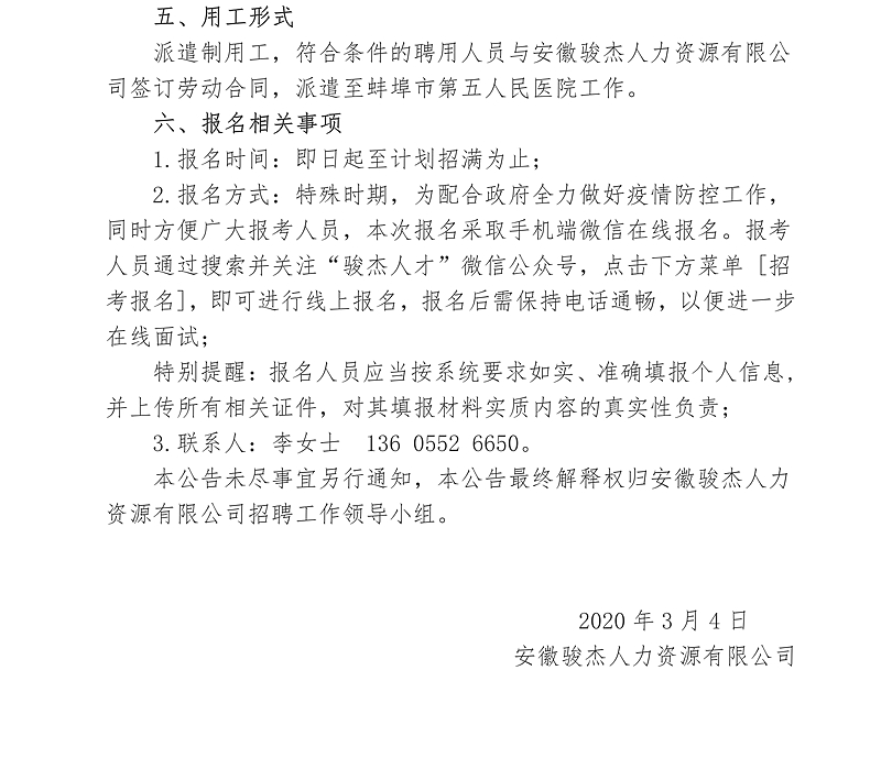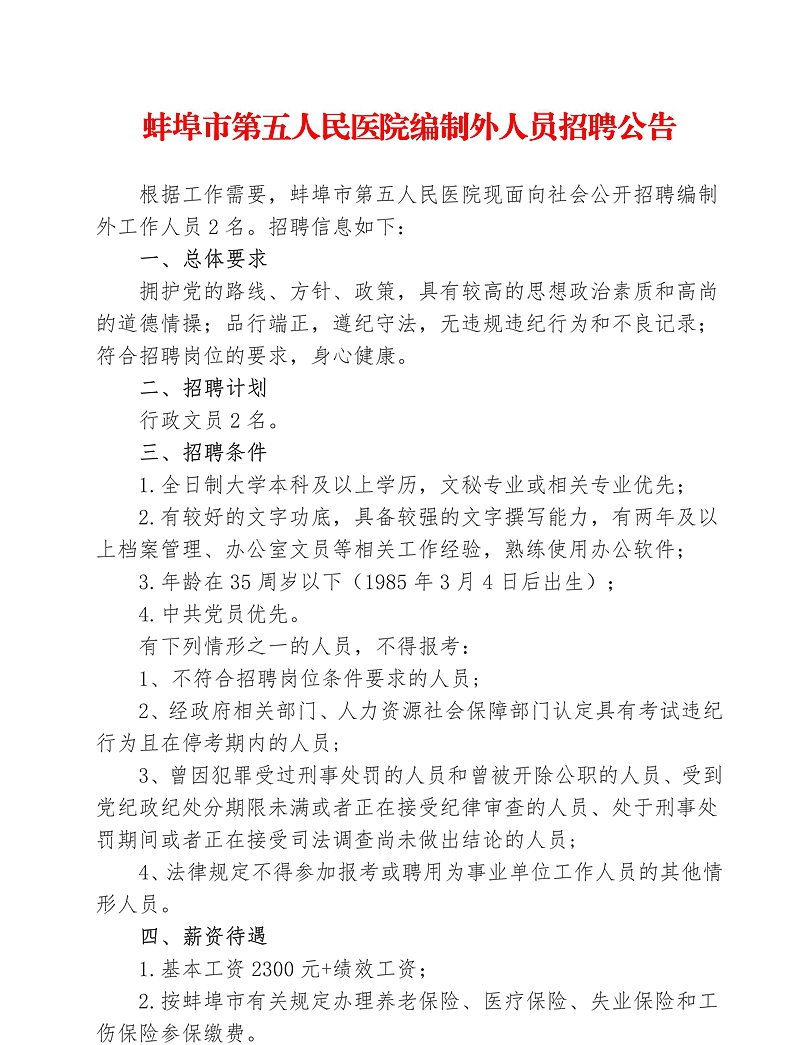 2020年蚌埠市第五人民醫(yī)院編制外人員招聘公告