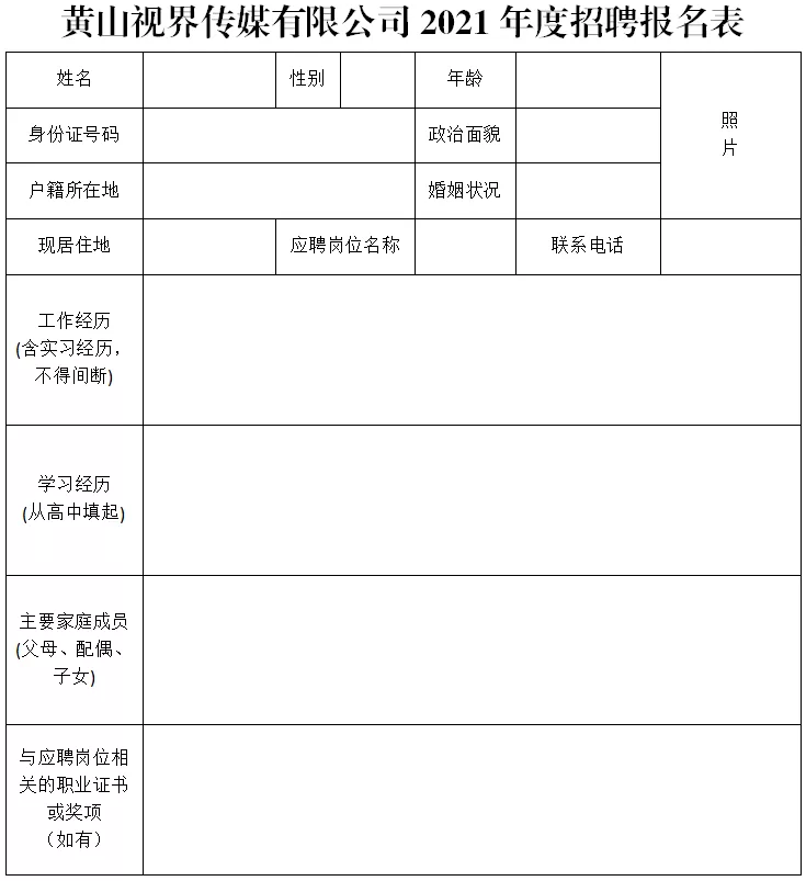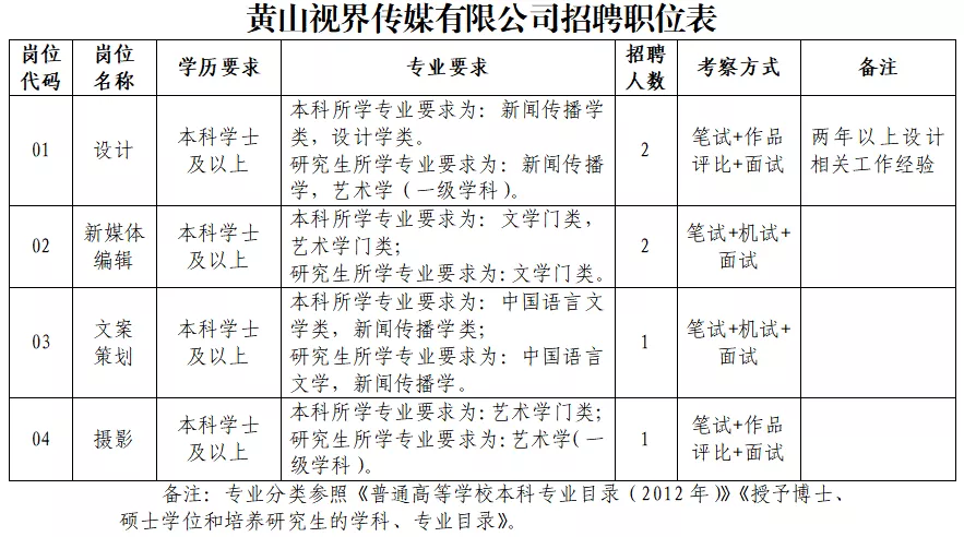 附件1:黃山視界傳媒有限公司招聘職位表