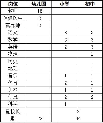 2021年面向全國(guó)公開(kāi)招聘公辦教師、民辦教師、應(yīng)屆大學(xué)畢業(yè)生及管理人員66名。