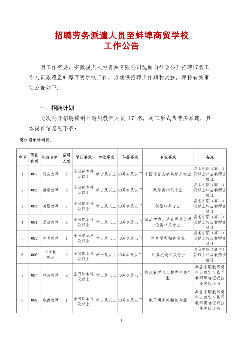 2021年蚌埠商貿(mào)學(xué)校招聘勞務(wù)派遣人員工作公告