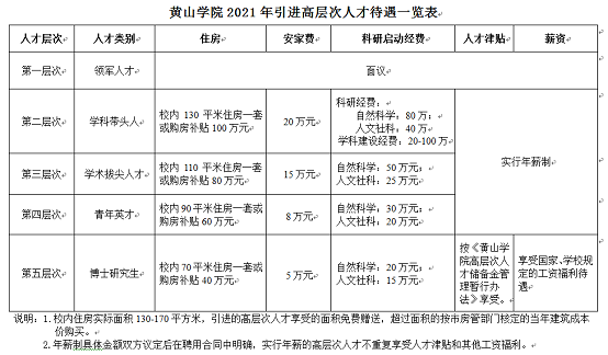 詳見《黃山學院高層次人才引進辦法(試行)》(附件二)