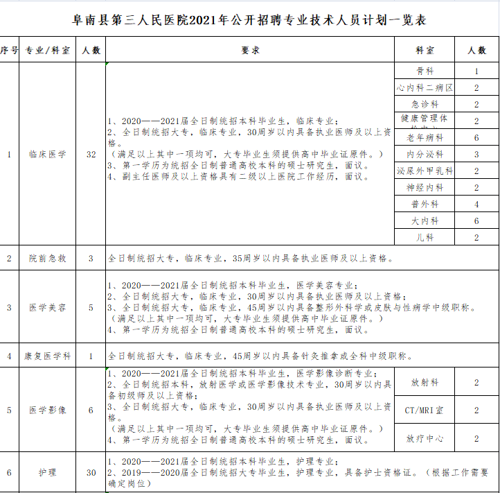 附件:《阜南縣第三人民醫(yī)院2021年公開(kāi)招聘專(zhuān)業(yè)技術(shù)人員計(jì)劃一覽表》