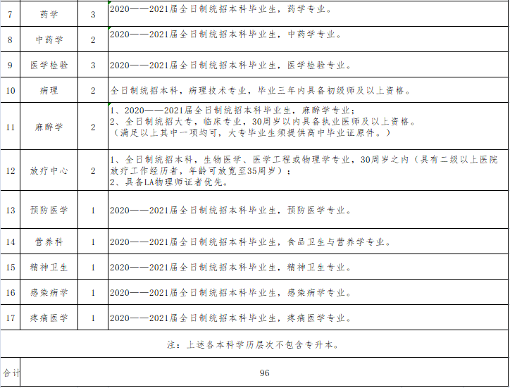 符合臨床專(zhuān)業(yè)全日制統(tǒng)招碩士及以上學(xué)歷或具有臨床專(zhuān)業(yè)副主任醫(yī)師及以上資格,享受縣政府人才引進(jìn)相關(guān)政策待遇。