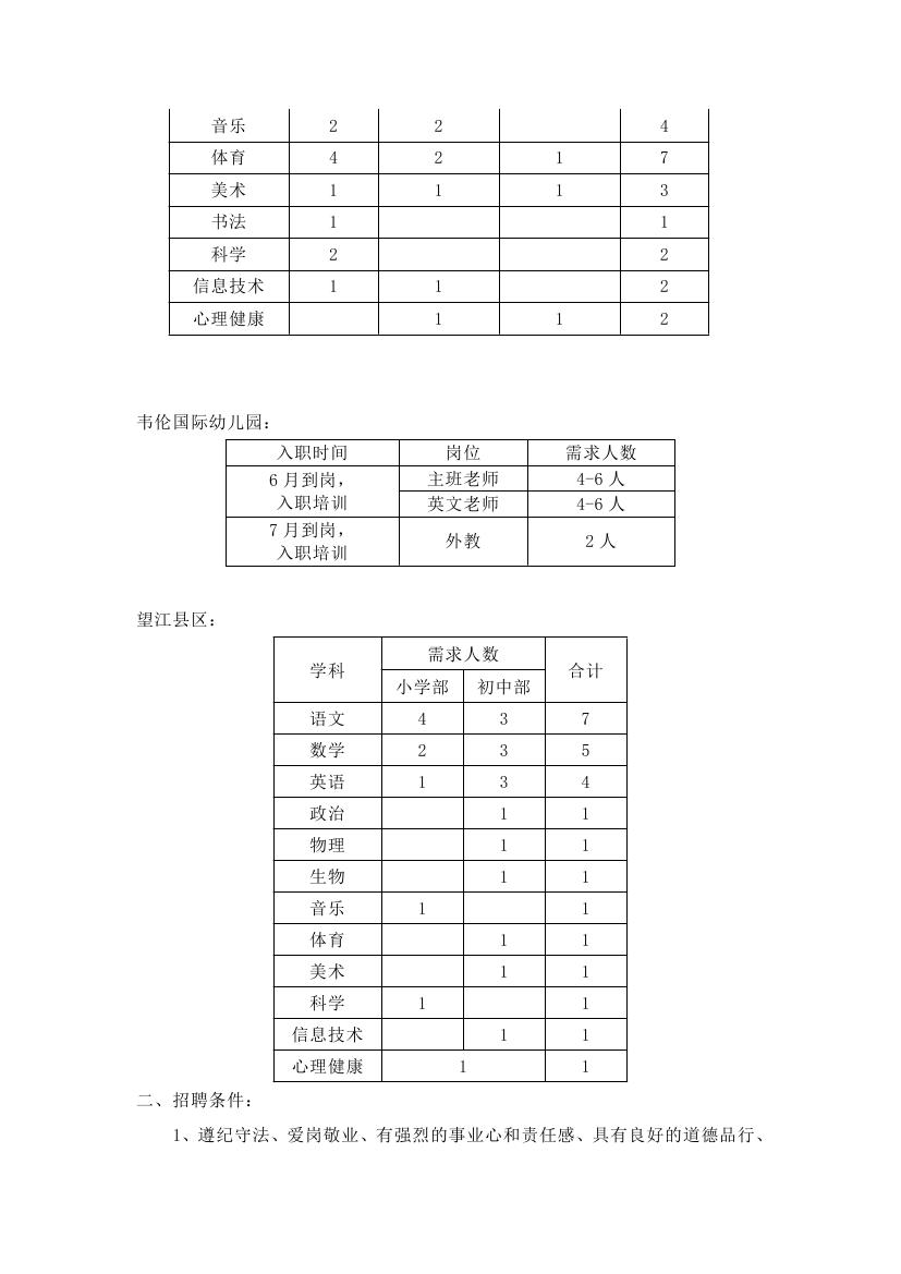 一、招聘學(xué)科及人數(shù):
