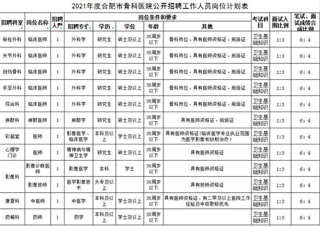 附件1:《2021年度合肥市骨科醫(yī)院公開招聘工作人員崗位計劃表》