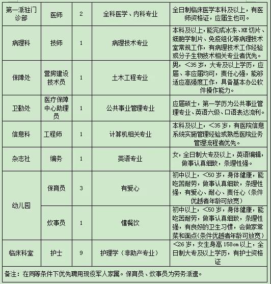 2、身心健康,熱愛(ài)軍隊(duì)醫(yī)療事業(yè),并能勝任本專業(yè)工作。(信息科工程師招聘人數(shù)為2人)