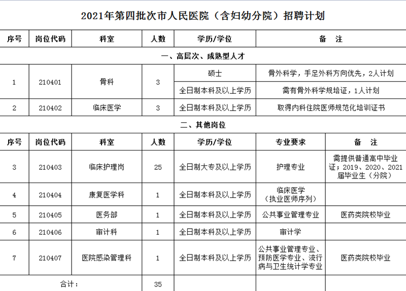2021-07-22 10:17:19閱讀()宣城市人民醫(yī)院為滿足市人民醫(yī)院及市婦幼保健院發(fā)展需要,加強(qiáng)人才隊(duì)伍建設(shè),按照公開、平等、競爭、擇優(yōu)的原則,面向社會公開招聘工作人員,現(xiàn)將有關(guān)事項(xiàng)通知如下。