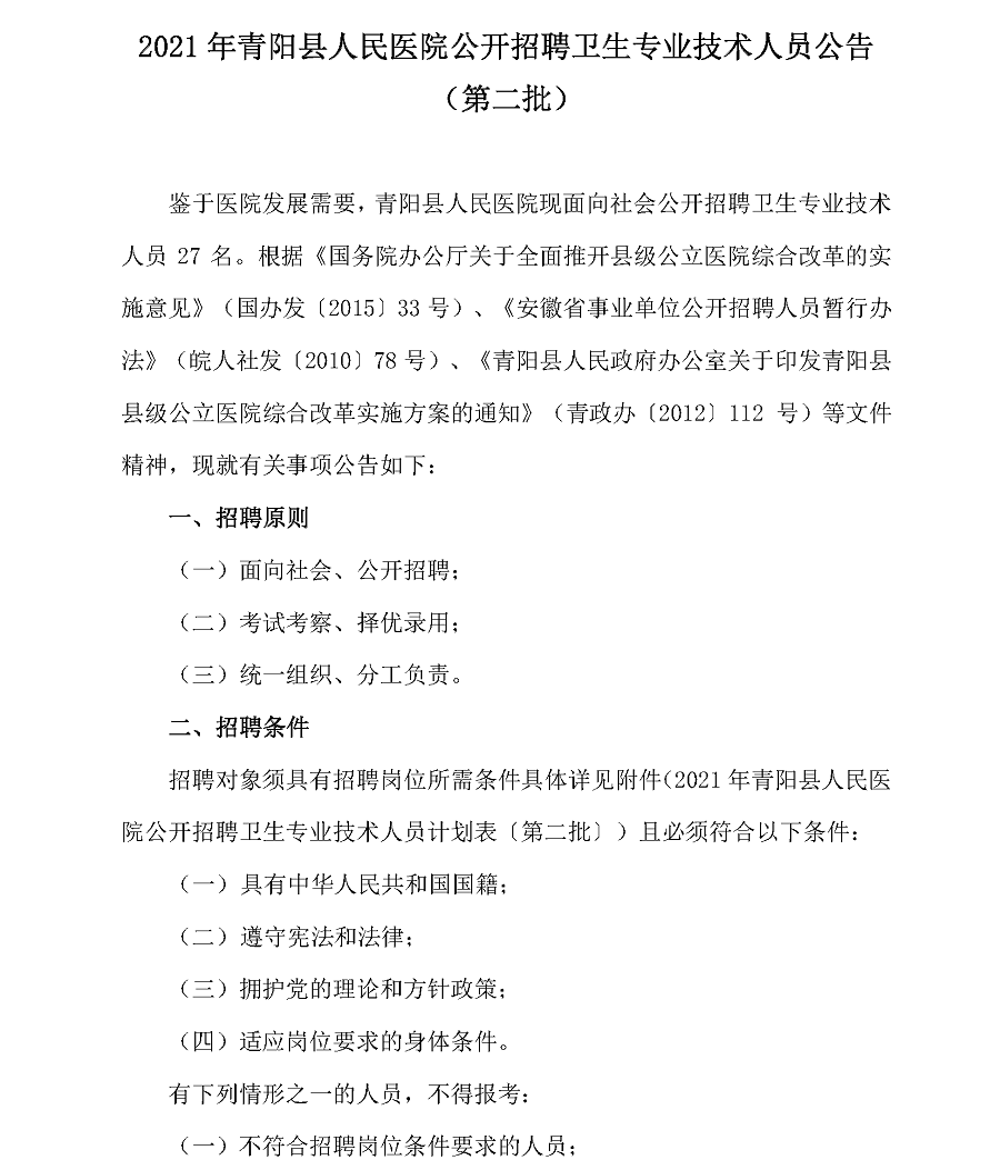 2021年池州青陽縣人民醫(yī)院公開招聘衛(wèi)生專業(yè)技術人員公告(第二批)