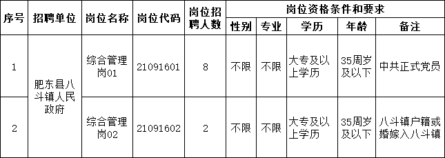 (七)具備省公務(wù)員主管部門和《肥東縣農(nóng)村村級(jí)工作人員管理辦法(試行)》規(guī)定的擬任職位所要求的其他資格條件;