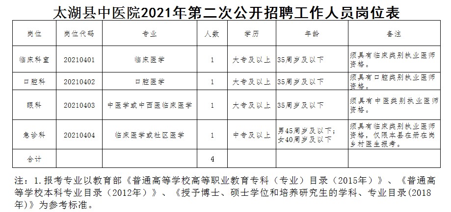 2021年安慶太湖縣中醫(yī)院第二次公開招聘工作人員公告
