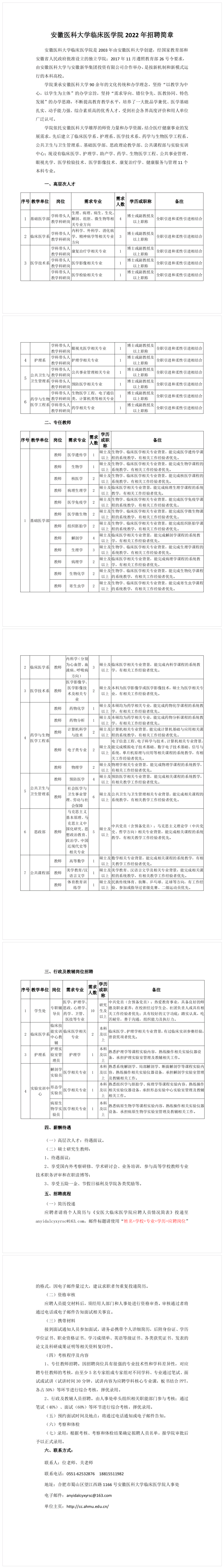 2022年安徽醫(yī)科大學(xué)臨床醫(yī)學(xué)院招聘簡(jiǎn)章