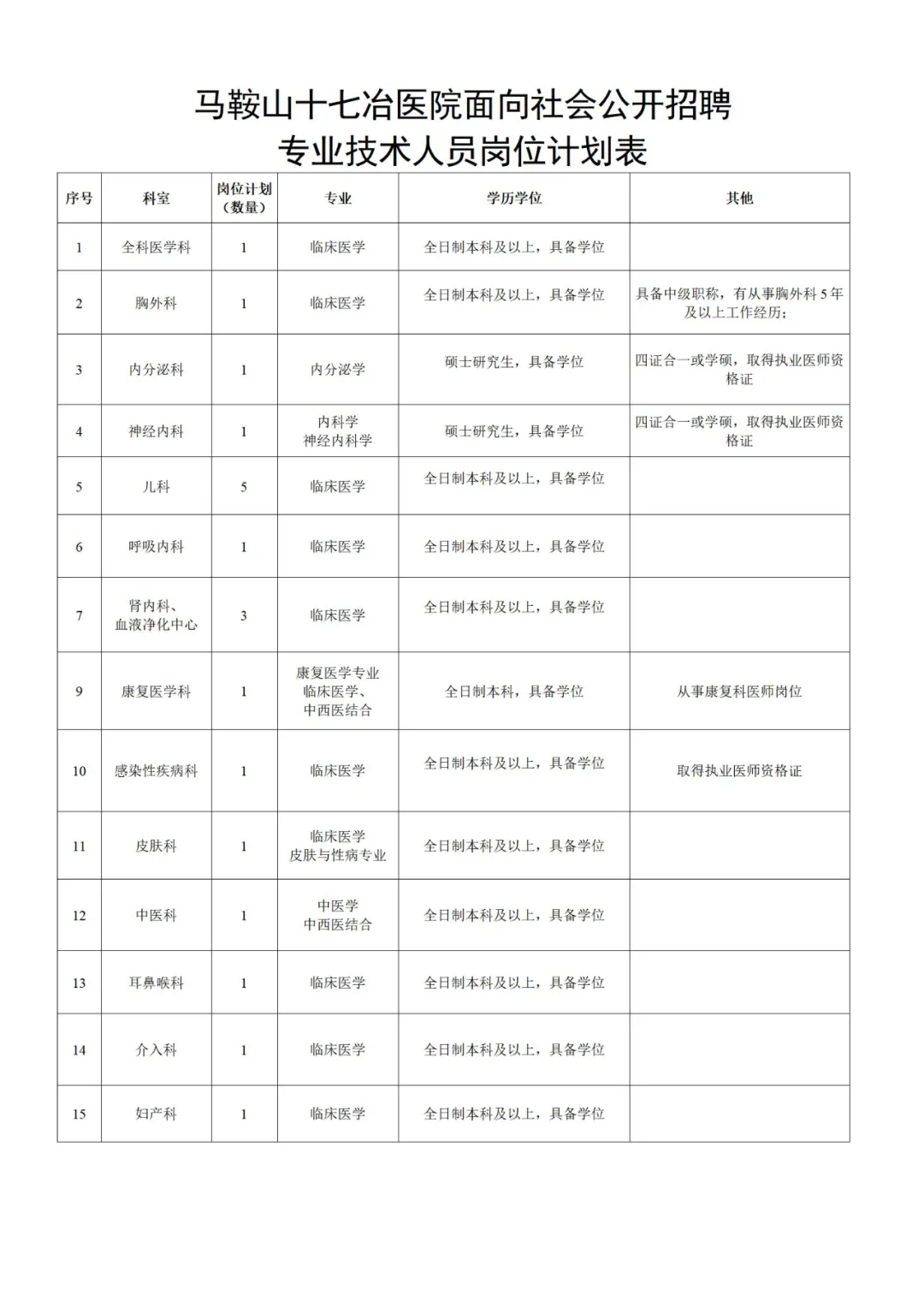 個人應聘材料發(fā)送至馬鞍山十七冶醫(yī)院人力資源部郵箱,并備注:姓名+應聘崗位+手機號。