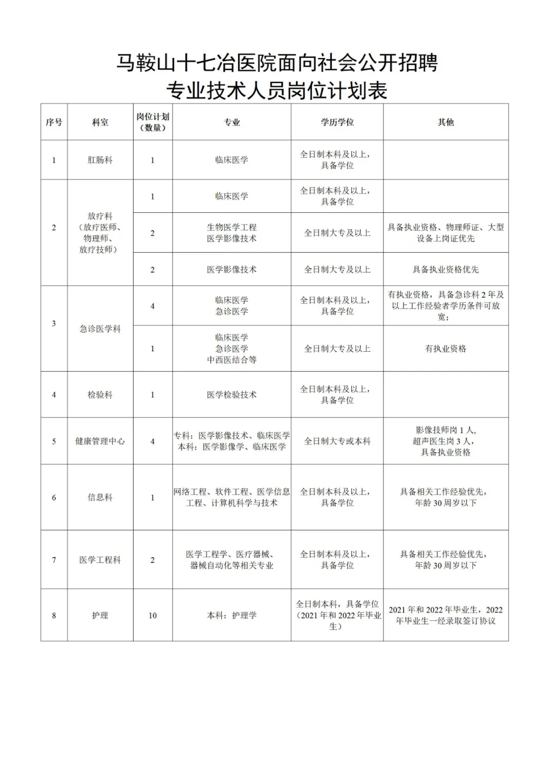 2021年馬鞍山十七冶醫(yī)院招聘公告