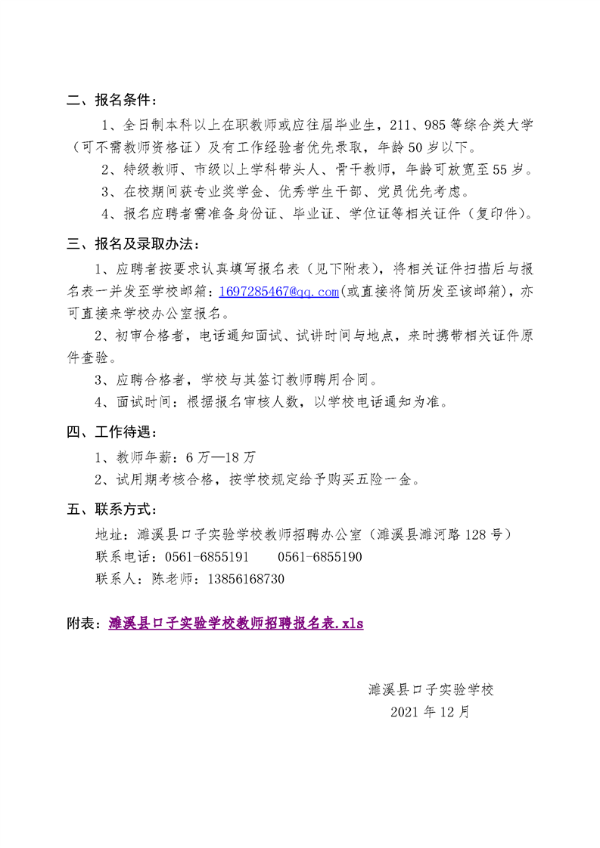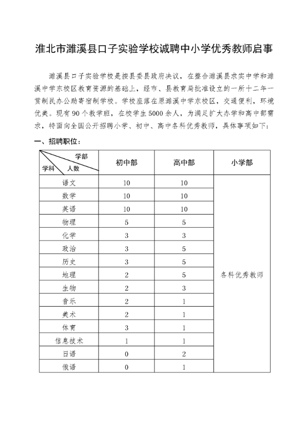 2021年淮北市濉溪縣口子實(shí)驗(yàn)學(xué)校誠聘中小學(xué)優(yōu)秀教師啟事