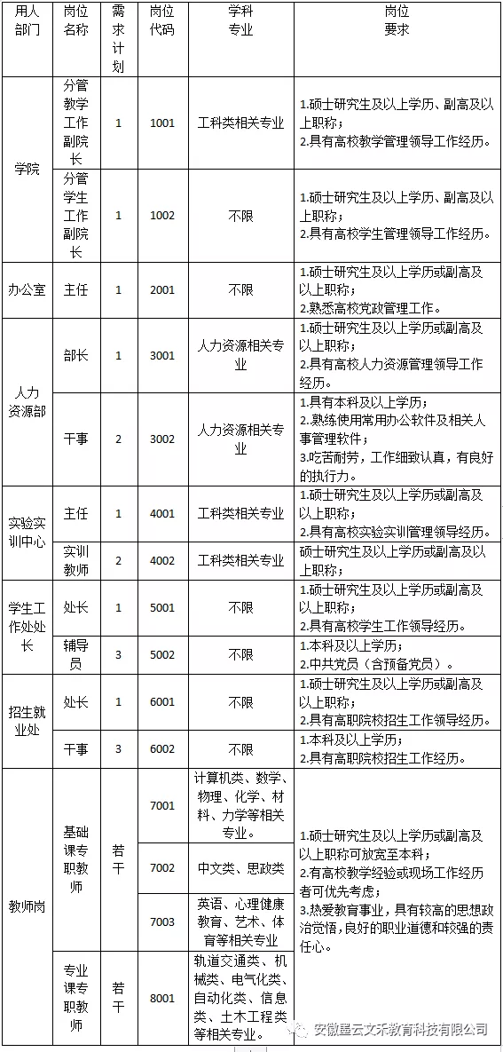 “北京京師中教集團”創(chuàng)立于2004年,總部位于北京。學(xué)院建成后將成為一所專業(yè)設(shè)置涵蓋城市軌道交通全產(chǎn)業(yè)鏈,培養(yǎng)體系系統(tǒng)完善、設(shè)施設(shè)備齊備先進,具有軌道交通特色的高職院校,能為我省、長三角乃至全國軌道交通行業(yè)培養(yǎng)大批高素質(zhì)技術(shù)技能型人才。目前,籌建中的學(xué)院各項建設(shè)正快速推進,為適應(yīng)建設(shè)軌道交通特色鮮明的高水平應(yīng)用型職業(yè)院校的需要,現(xiàn)面向社會公開招聘部分管理崗位。公告如下: