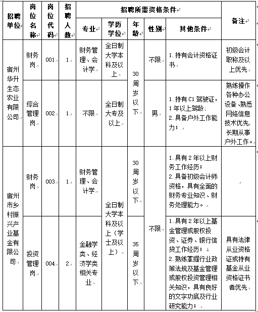 宿州市鄉(xiāng)村振興投資集團有限公司是我市市屬國有企業(yè),是推動我市農(nóng)業(yè)農(nóng)村發(fā)展,加快推進鄉(xiāng)村振興的重要平臺。為建立健全現(xiàn)代企業(yè)制度,充實子公司人員隊伍,根據(jù)集團發(fā)展需要及子公司用工實際,根據(jù)相關規(guī)定,經(jīng)集團公司研究,擬面向社會公開招聘工作人員5名,其中宿州市鄉(xiāng)村振興產(chǎn)業(yè)基金有限公司3名,宿州華升生態(tài)農(nóng)業(yè)有限公司2名?,F(xiàn)將有關事項公告如下:
