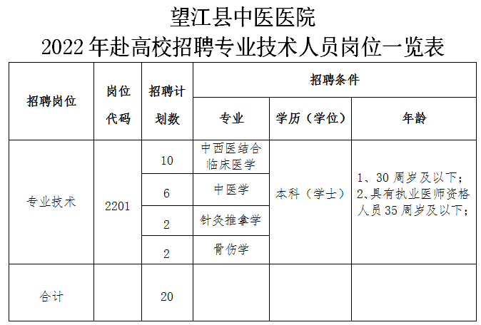 附件:1、望江縣中醫(yī)醫(yī)院2022年赴高校招聘專業(yè)技術(shù)人員崗位一覽表