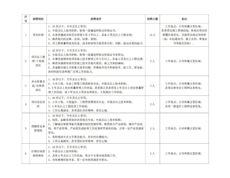 公司建立了以南京、蘇州、蚌埠等地為主的華東區(qū)域市場,重慶、成都等地為主的西南區(qū)域市場,西安、寶雞、漢中為主的陜西區(qū)域市場,銀川、蘭州、白銀等地為主的西北區(qū)域市場。為滿足企業(yè)發(fā)展需要,強化區(qū)域市場經(jīng)營開發(fā)及施工生產(chǎn)管理,現(xiàn)已在廣州、鄭州、深圳等地設(shè)立了區(qū)域指揮部,實現(xiàn)人力資源對生產(chǎn)運營的有效支撐,擬面向社會招聘具有一級建造師執(zhí)業(yè)資格及相關(guān)專業(yè)技術(shù)的管理人才。