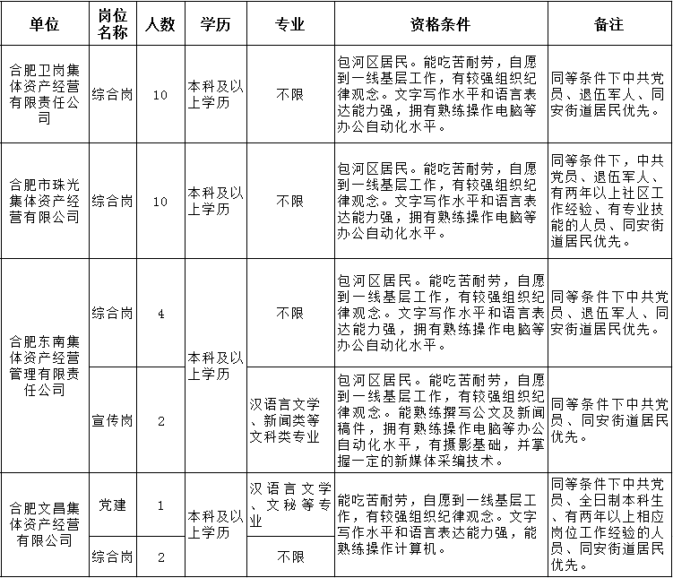 合肥包河區(qū)人力資源開發(fā)有限公司受用人單位委托,擬面向社會公開招聘公司工作人員29名,公告如下: