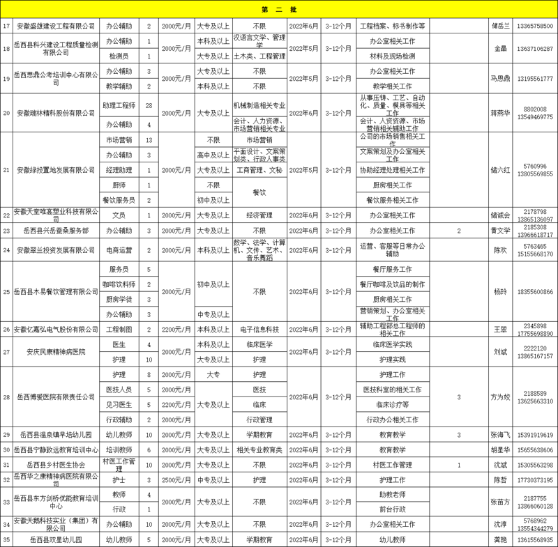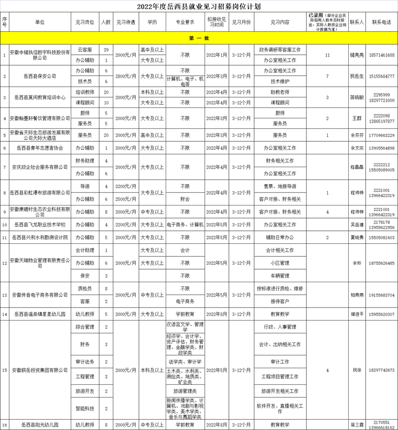 附件:《2022年度岳西縣就業(yè)見習(xí)招募崗位計(jì)劃(第二批)》(含第一批未招滿)