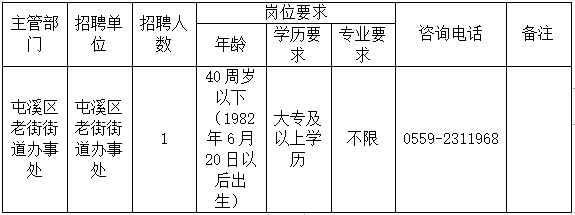 為切實(shí)加強(qiáng)街道工作人員的隊(duì)伍管理和建設(shè),解決工作人員不足問(wèn)題,根據(jù)《屯溪區(qū)機(jī)關(guān)事業(yè)單位編外人員管理辦法》規(guī)定和要求,結(jié)合屯溪區(qū)老街街道辦事處工作實(shí)際所需,經(jīng)核準(zhǔn),屯溪區(qū)老街街道辦事處委托黃山市仁和人力資源服務(wù)有限公司面向社會(huì)公開(kāi)招聘1名編外人員。現(xiàn)將有關(guān)事項(xiàng)公告如下: