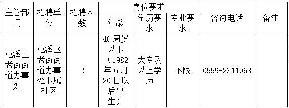 為切實加強街道工作人員的隊伍管理和建設(shè),解決工作人員不足問題,根據(jù)《屯溪區(qū)機關(guān)事業(yè)單位編外人員管理辦法》規(guī)定和要求,結(jié)合屯溪區(qū)老街街道辦事處工作實際所需,經(jīng)核準(zhǔn),屯溪區(qū)老街街道辦事處委托黃山市仁和人力資源服務(wù)有限公司面向社會公開招聘2名社區(qū)專職工作者?,F(xiàn)將有關(guān)事項公告如下: