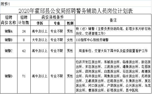 2020-06-30 23:07:25閱讀()霍邱縣人民政府根據(jù)全縣公安工作需要,經(jīng)霍邱縣人民政府批準,霍邱縣公安局面向社會公開選聘警務輔助人員,現(xiàn)公告如下: