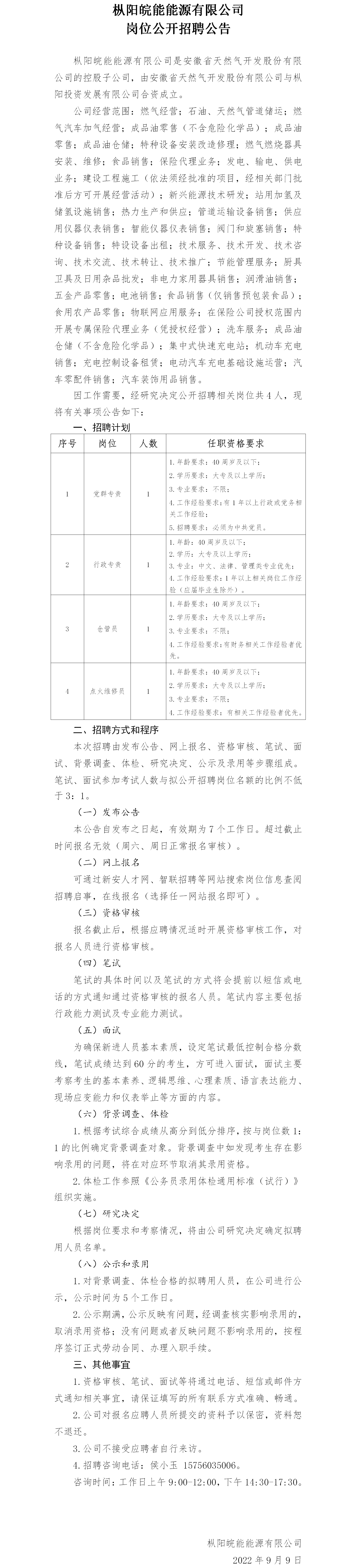 2022年銅陵樅陽(yáng)皖能能源有限公司崗位公開(kāi)招聘公告