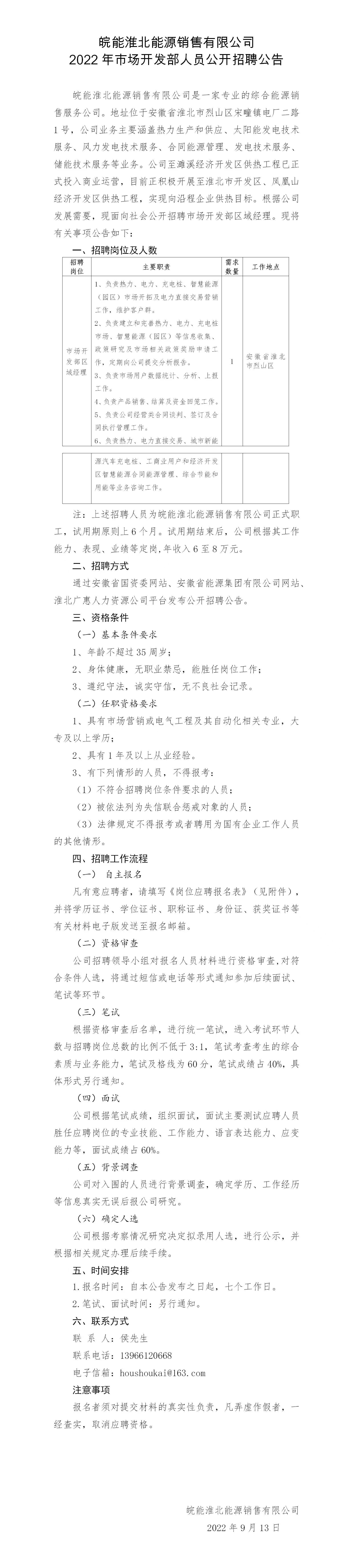 2022年皖能淮北能源銷售有限公司市場開發(fā)部人員公開招聘公告