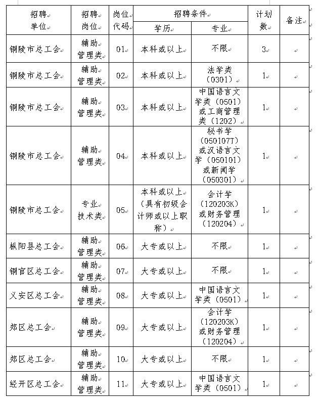 因工作需要,銅陵市總工會現(xiàn)面向社會公開招聘工會社會化工作者(聘用人員)13名,特制定如下公開招聘方案: