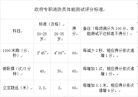 (3)測(cè)試項(xiàng)目:政府專職消防隊(duì)員1000米跑、俯臥撐、立定跳遠(yuǎn)。