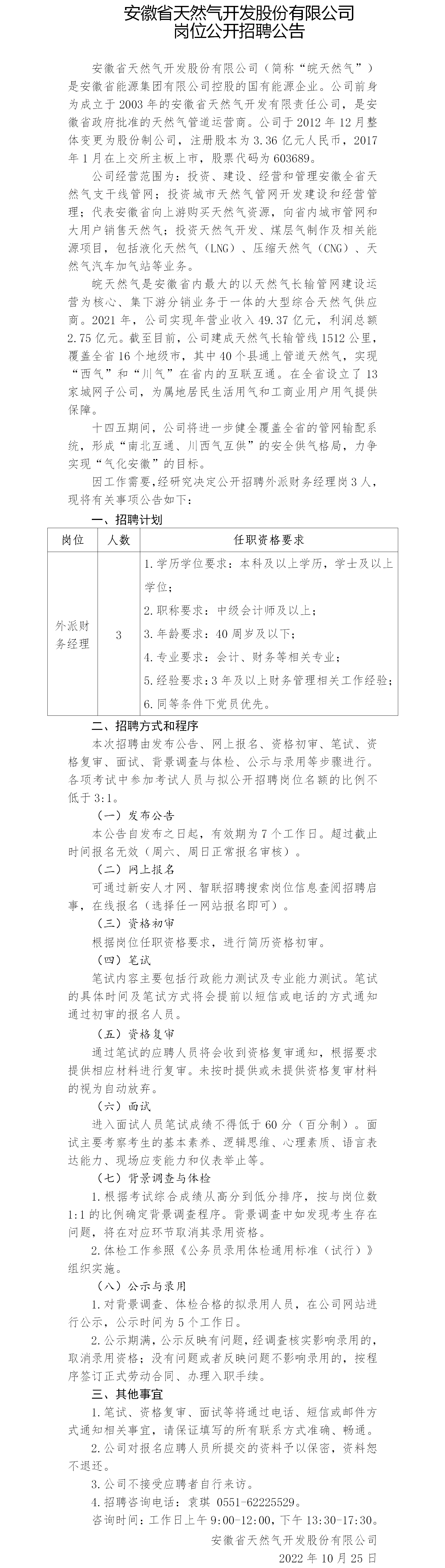 2022年安徽省天然氣開發(fā)股份有限公司崗位公開招聘公告(二)
