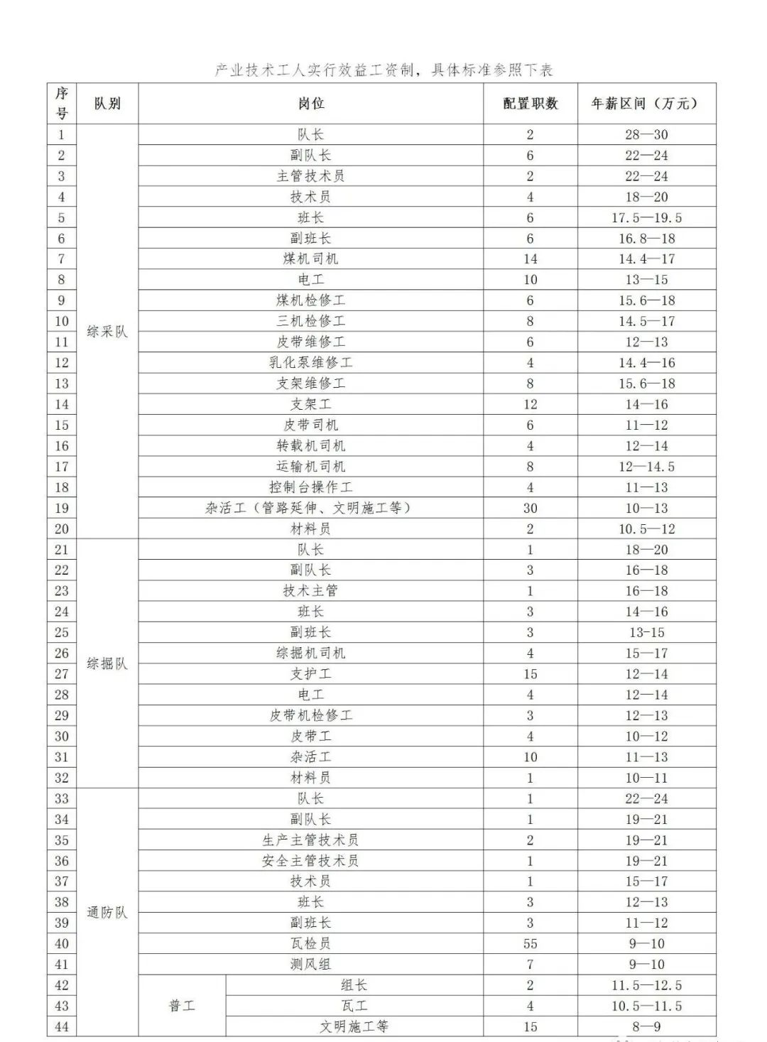 (2)區(qū)隊(duì)管理人員實(shí)行年薪制、產(chǎn)業(yè)技術(shù)工人實(shí)行效益工資制,具體標(biāo)準(zhǔn)參照下表: